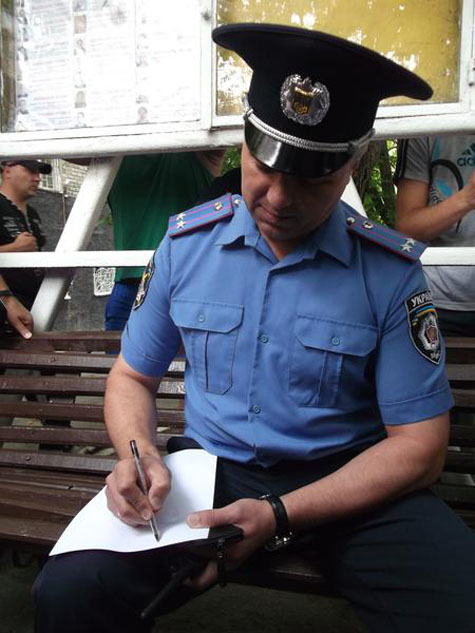 В райотделе к приходу «противника» подготовились заранее - на крыльцо вынесли стол, за которым сидел майор, готовый принимать заявление.