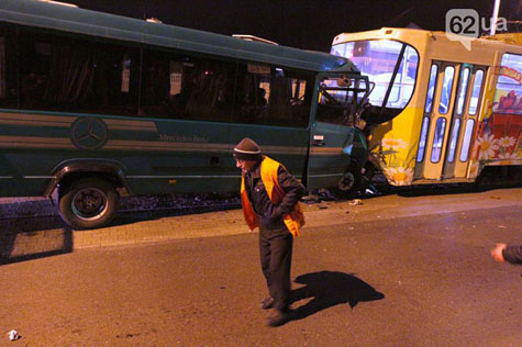 Вчера, накануне матча «Шахтер» - «Реал Сосьедад» в Киевском районе Донецка автобус с болельщиками из Антрацита (Луганская область) врезался в трамвай №1. В результате столкновения микроавтобуса с трамваем травмированы 6 человек.