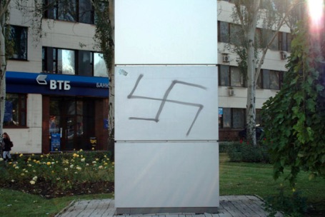 Как сообщает официальный сайт ГУМВД Украины в Донецкой области, утром 14 октября в дежурную часть Донецкого городского управления милиции поступило сообщение о том, что неизвестные возле главного корпуса Донецкого национального университета рисуют на стене здания свастику. Почти одновременно с этим, на сайте популярного интернет-издания "ОстроВ" появились фотографии аналогичных изображений, "украсивших" центральную улицу Донецка - им. Артема.
