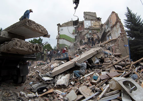 Напомним, что сегодня утром в результате авиаудара неизвестного самолета по городу, жилой дом на улице Ленина, 14 был практически полностью разрушен, также пострадали соседние дома.