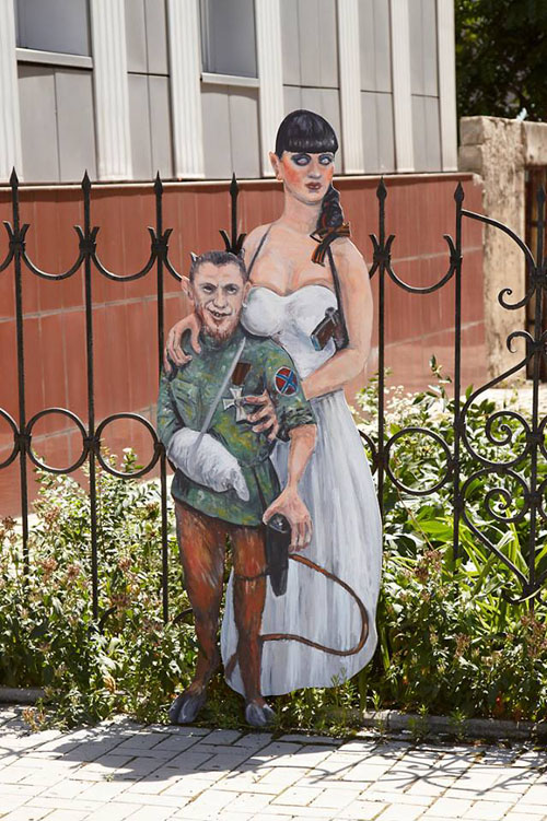 Работа арт-группы "Myrzilka myrzilka" в Донецке 16 июля. Продержались экспонаты минимум три часа.