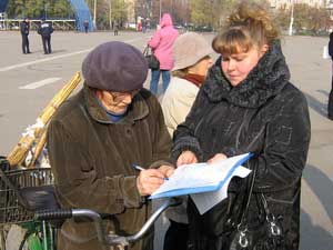 Собирать подписи жителей Славянска на листовках, против нынешнего мэра города, впервые начали во вторник, 1 ноября, во время проведения акции протеста работниками КП «Славгорводоканал».