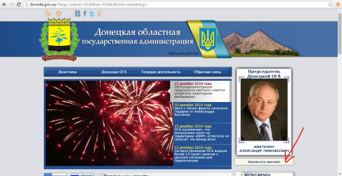 Кроме того, через сеть Интернет граждане могут напрямую обратиться к губернатору Донецкой области Алексанлру Кихтенко: на официальном сайте Донецкой облгосадминистрации работает сервис «Написать письмо председателю ОГА».