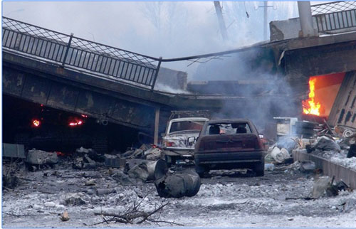 Но на украинской земле появились пришлые выродки, которым, ради развлечения, ничего не стоит в клочья разнести здание автозаправки и даже скромный клозет. А уж автомобильный мост для выродков и вовсе является лакомой конфеткой...