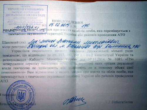 "Знаешь что, дорогое государство? Мои родители не из тех людей, которые будут ходить, добиваться, унижаться, просить или требовать, - пишет на своей страничке в Фейсбук краматорский журналист Дмитрий Лукьяненко, родственники которого лично столкнулись с отказом в собесе. - Они привыкли во всем надеяться только на себя, и они прорвутся с Божьей помощью и помощью близких. Просто тебе надо подумать о том, что рано или поздно эта война кончится. С фронта вернутся десятки тысяч опаленных боями и не совсем вменяемых после этого мужиков. И когда они увидят, что на мирных территориях ничего не поменялось, они спросят вас (правительство, мерии, городские советы, ментов, налоговиков, собесовцев, и пррочих государственных клерков): "Мы под смертью ходили. За вас и ваше спокойствие. А чем вы, суки, тут занимались?.. И тогда вы жидко обосретесь. Потому, что если они не услышат вразумительного ответа, разговор у них будет короткий".