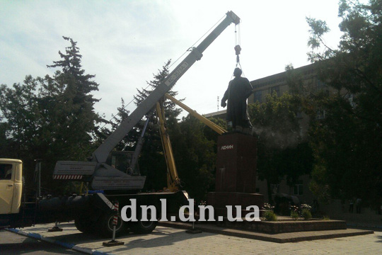 Утром 23 июня в центре Дружковки силами работников КП "Спектр" начался демонтаж памятника Ленину.