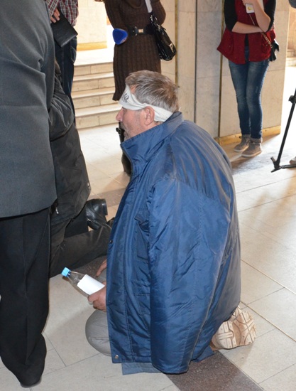 Один из чернобыльцев упал на колени перед пришедшим на сессию депутатом и умолял его помочь участникам голодовки войти в зал заседаний. Так как данная мера не возымела никакого действия, представители инициативной группы заявили, что если их не допустят на сессию, то к областному совету придут все участники акции под управлением Пенсионного фонда. «Сейчас все люди сюда подтянутся», - пообещали чернобыльцы.