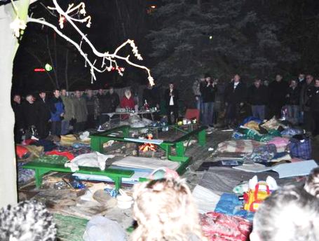 Чернобыльцы заявили, что не оставят место разгромленного палаточного городка до тех пор, пока к ним немедленно не явится губернатор Донецкой области Андрей Шишацкий.