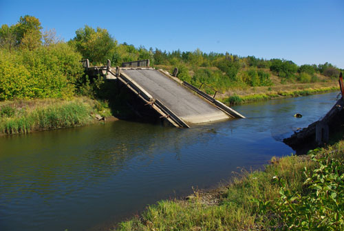 Автомобильный мост в районе Славянска был демонтирован силами структурного подразделения Компании Управлением «Донбассводоремонт». Работники этого управления с помощью бригады водолазов выполнили дробление железобетонных конструкций моста под водой без остановки работы участка канала и извлекли их из русла.