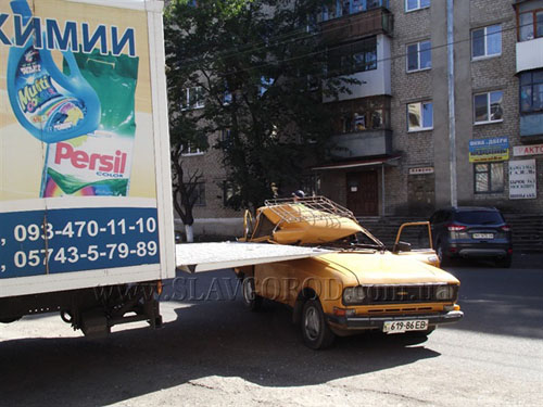 Около полудня 25 сентября в Славянске на улице Чубаря водитель автомобиля «Москвич-412», не заметив опущенный борт грузовика, на приличной скорости врезался в него.
