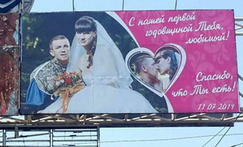 В Донецке снова можно полюбоваться на безмерное женское счастье уроженки славянского поселка Семеновка Елены Павловой, ставшей в прошлом году женой российского боевика Арсений Павлова по кличке "Моторола".