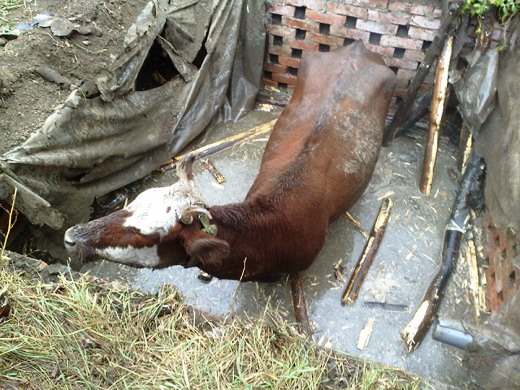 По информации пресс-службы Главного территориального управления МЧС Украины в Донецкой области, в четверг, 29 ноября, бойцы МЧС в Макеевке спасли корову, провалившуюся в сливную яму глубиной около 3 метров.