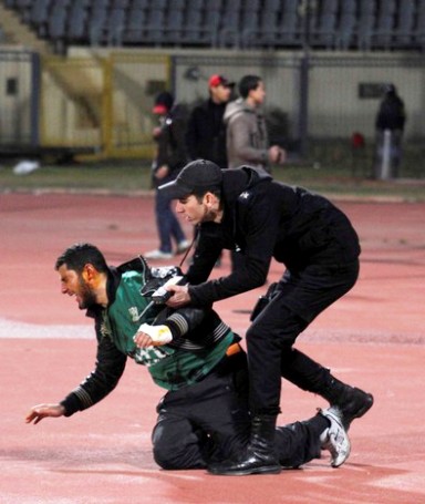 На стадионе и вокруг арены творилась форменная вакханалия. Разгневанная толпа загнала болельщиков «Аль-Ахли» в угол сектора. В итоге возникла давка, в которой погибли, возможно, несколько десятков любителей футбола из столицы Египта. Тех же, кто сумел выбраться со стадиона, на улице поджидали фанаты «Аль-Масри», жаждущие расправы над своими каирскими визави. В болельщиков «Аль-Ахли» летели камни и бутылки.