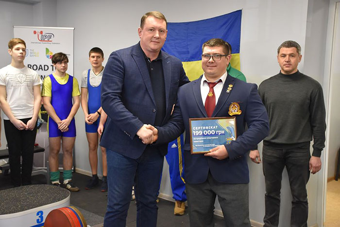 Мэр также передал спортсменам сертификат на новое оборудование на сумму в 199 000 гривен, которое было приобретено на средства городского бюджета.