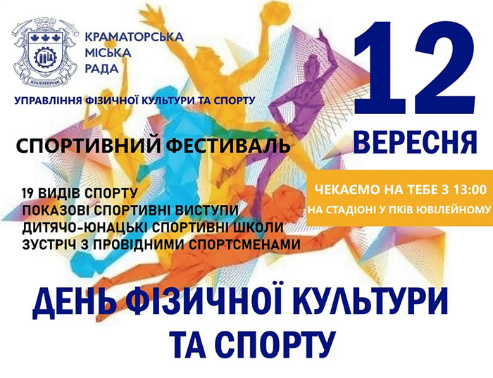 В Краматорске в воскресенье, 12 октября, пройдет "Спортивный фестиваль", посвященный Дню физкультурника. Мероприятие состоится на стадионе в парке Юбилейный.
