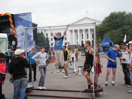 На центральной площади Краматорска сегодня с утра многолюдно. Празднование дня города здесь открылось самыми разными спортивными состязаниями.