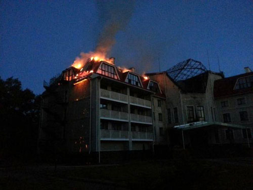 Возник большой пожар. Всю ночь на СТБ "Кирша" работали пожарные расчеты. Огонь удалось локализовать, но на отдельных участках здание все еще горит, его пытаются потушить. Значительный урон нанесен жилым и подсобным помещениям базы.