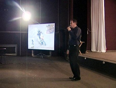 На вечере памяти в кинотеатре «Мир» одноклассники и знакомые читали стихи о талантливом мотогонщике и посвятили ему свои музыкальные композиции.