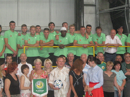 "Благодаря вашей поддержке, благодаря тем деньгам, которые вы зарабатываете, мы восстановили стадион, мы создали команду, которая играет на профессиональном уровне чемпионата Украины", - сказал президент "Авангарда" Александр Большаков, обращаясь к заводчанам. Сотрудники завода провели для футболистов экскурсию.Команда подарила заводу футбольный мяч с автографами игроков, клубный вымпел и футболку "Авангарда" с номером "12" и надписью СКМЗ.