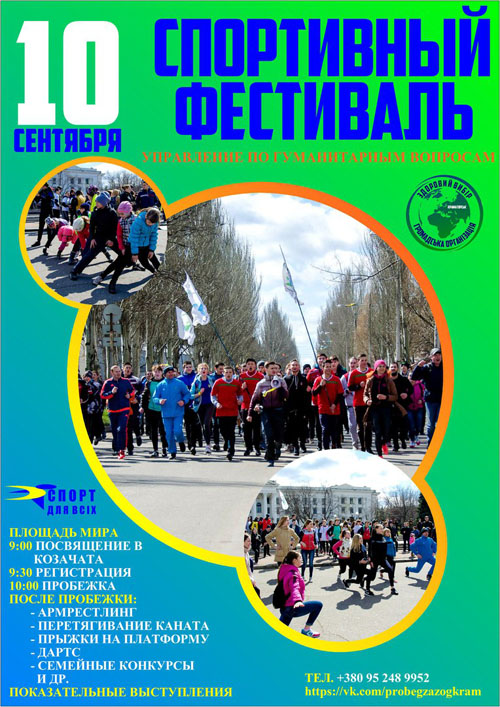 В Краматорске 10 сентября пройдет спортивный фестиваль, в рамках которого, в том числе, состоится традиционная легкоатлетическая пробежка "За здоровый образ жизни".