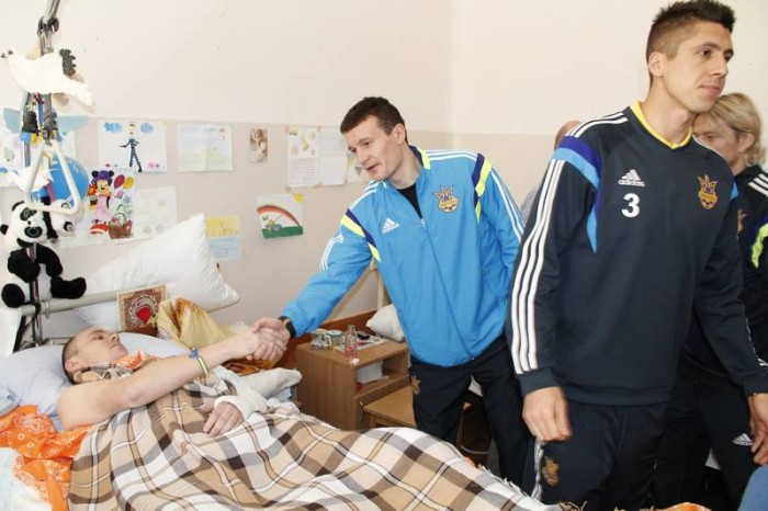 Игроки национальной сборной по футболу проведали раненых бойцов антитеррористической операции в Главном военно-медицинском клиническом центре Министерства обороны Украины.