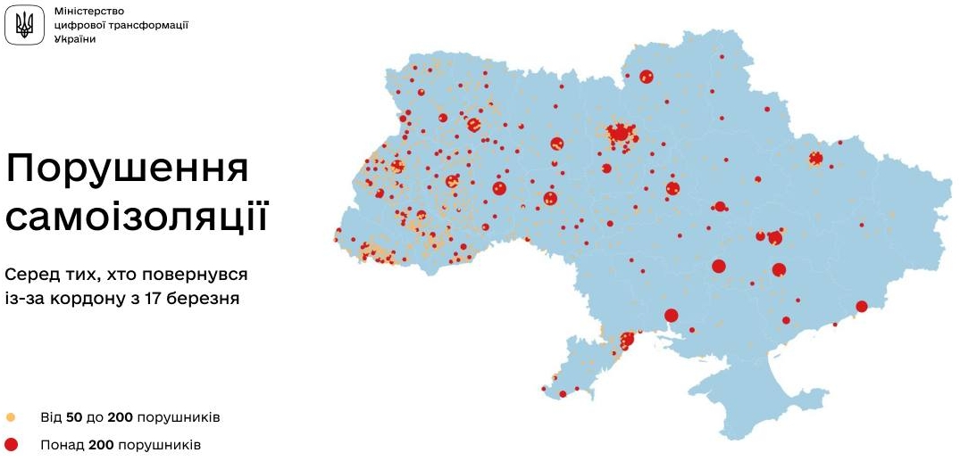 Карта для Совета нацбезопасности (у которого есть и другая карта) и Минздрава создана на основе данных от операторов мобильной связи о более чем 500 000 человек: это абоненты, которые с 17 марта вернулись в Украину оттуда, где эпидемия.