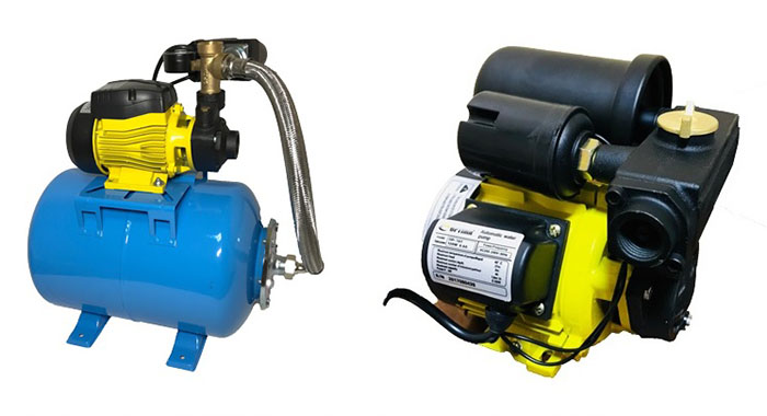 Моделей с различными модификациями может быть множество, но стандартная комплектация — это накопительная ёмкость (гидроаккумулятор для автономной работы), самовсасывающий насос, электрический двигатель и реле (датчик, включающий и выключающий насос при изменении давления воды).