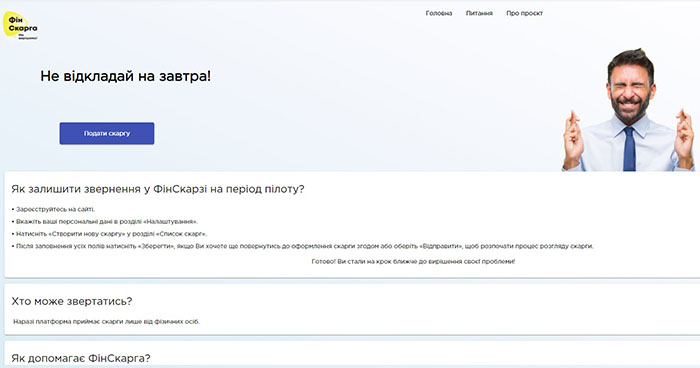 В Украине запустили в тестовом режиме платформу ФинСкарга, на которой любой желающий может бесплатно пожаловаться на банк или микрофинансовую организацию, сообщается на сайте Украинской ассоциация Финтех и инновационных компаний (UAFIC), которая запустила платформу при поддержке USAID.