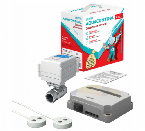 - В случае попадания воды на датчик, а он ставится в таком месте, чтобы при утечке она на него обязательно попала, срабатывает электроника, запускается электропривод крана системы защиты и водопровод к месту аварии перекрывается.