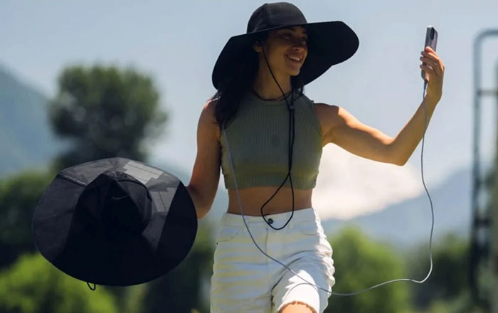 Капелюх Power Hat вартістю $129 оснащений сонячними елементами, виготовленими з монокристалічного кремнію, тонкого і гнучкого матеріалу. Він забезпечує приблизно 12 Вт потужності зарядки через вбудовані в капелюх роз’єми USB-A та USB-C.