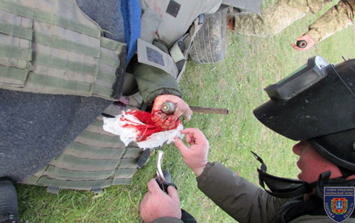 Во время боевых стрельб на полигоне Военной академии гранатой из подствольного гранатомета ранен военнослужащий. О случившимся сообщили в полицию, и на место происшествия немедленно была направлена группа специалистов-взрывотехников - подполковник полиции Тарас Кравченко и Артем Купченко. При осмотре было установлено, что потерпевшим является курсант 2 курса факультета Военно-мобильных десантных войск Военной академии. "У курсанта был обнаружен отстрел ВОГ-25П, застрявший в левой кисти. Учитывая, что данный боеприпас находился в крайне опасном состоянии:прошел канал ствола с повреждением взрывателя, приняли решение о его обезвреживании. Пострадавшему была обеспечена бронезащита, после чего - проведены мероприятия по изъятию боеприпаса из кисти", - отметили в полиции. Взрывотехники изъяли боеприпас из руки потерпевшего и обезвредили его в безопасном месте.