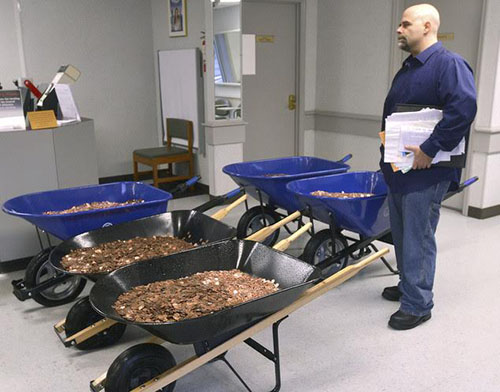Ник Стаффорд, бизнесмен из города Лебанон, штат Вирджиния, решил заплатить налог на регистрацию двух новеньких авто… металлическими монетами! По его словам, таким образом он просто решил доставить неудобство транспортным чиновникам за то, что с полгода назад они отказались дать ему нужный телефонный номер.