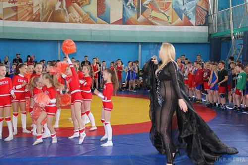 В Нежине Черниговской области певица выступила на детском мероприятии с огромным декольте и без нижнего белья. Артистку пригласили на детские соревнования по вольной борьбе "Кубок Мерлени", - сообщает на своей странице в Facebook пользователь Alex Mann.