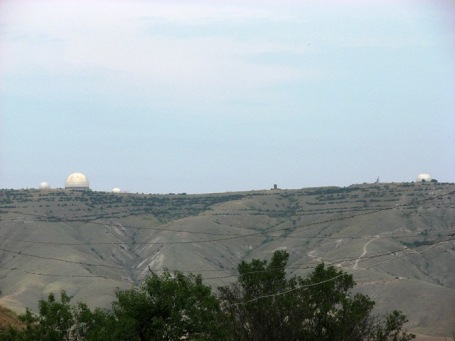 Вообще, дух и следы военщины в Орджоникидзе по-прежнему сильны. Издали, при въезде в поселок, на доминирующей высоте бросаются в глаза несколько белых куполов. По наивности, мы было стали расспрашивать местных жителей о том, как добраться к этой обсерватории. Оказалось, что «обсерватория» - действующая часть системы ПВО страны, и под мирными белыми куполами гнездятся армейские радары раннего оповещения. Так что экскурсии не получилось.