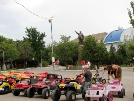 А посреди аттракционного городка всё тычет в светлое будущее незабвенный вождь мирового пролетариата.