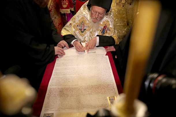 Варфоломей подписал Томос об автокефалии Православной церкви Украины в храме Святого Георгия в Стамбуле.