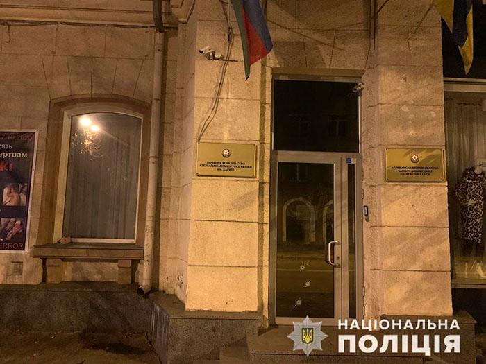 "Сегодня около 2 часов 30 минут ночи (с 6 на 7 ноября) обстреляли помещение Почетного консульства Азербайджанской Республики в г. Харьков по адресу: ул. Ярослава Мудрого, 7", - говорится в сообщении.