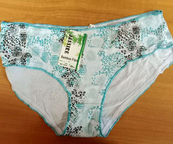 «Нижнее женское белье, зеленого цвета с черным узором, фирма «BAMBOOPIDRE», размер ХL», — говорится в описании лота.