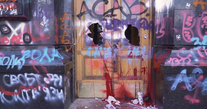 А в Офисе президента заявили, что такой вандализм дискредитирует участников акции протеста.
