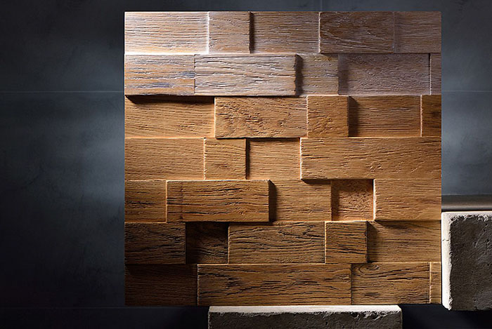 - Товары сделанные из древесины. Панели в форме плиток, которые монтируются на стены в единое полотно при помощи нескольких элементов. Также есть прямоугольные изделия разной длины, ширины.
