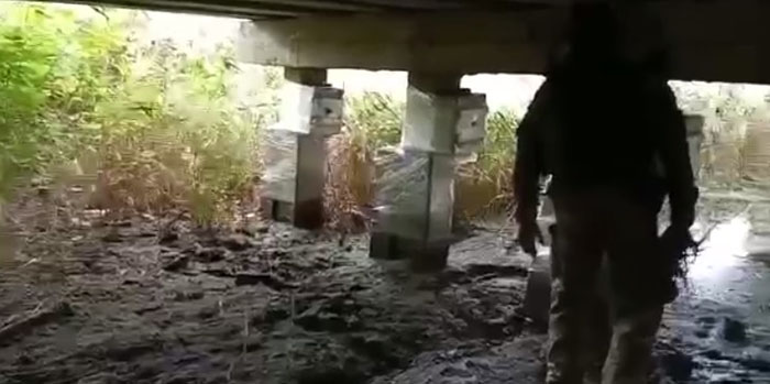 Повідомляється, що з опор моста було знято 400 кг гексогену.