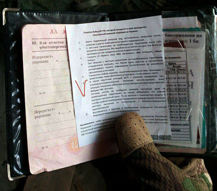 Зокрема, у ній є рекомендації для російських військових по просуванню ворожих наративів під час спілкування з місцевими, дозвіл на проживання у пустуючому житлі цивільних та примусове відчуження їх автотранспорту.
