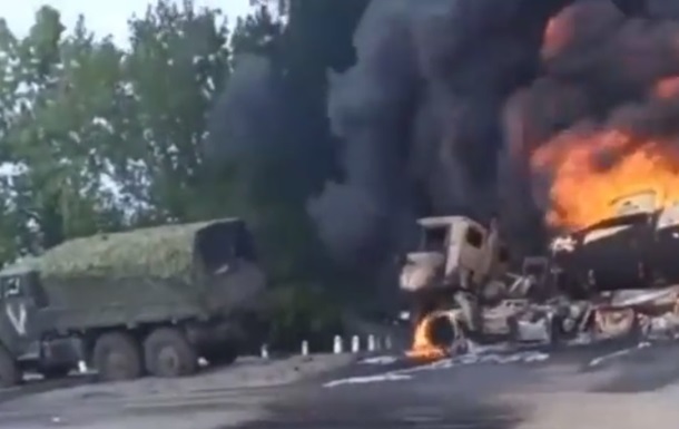 Українські захисники в районі Каховки "накрили" логістичну колону російських військ. Відповідне відео опублікував військовий аналітик Олександр Коваленко.
