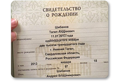 В Нижнем Тагиле Свердловской области родился мальчик, получивший имя в честь родного города, сообщает портал «Новости 66.Ru». Ребенок в семье Андрея и Натальи Шибановых, которые работают дальнобойщиками, появился 11 января 2013 года.