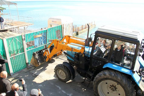 В демонтаже принимал участие Председатель Совета министров Крыма Анатолий Могилев. Управляя экскаватором, он снес стальные ворота, преграждавшие доступ к морю на пляже «МАС». После этого председатель правительства лично установил табличку «Бесплатный пляж».
