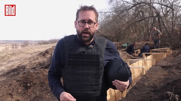 Як повідомляє заступник головного редактора видання Пауль Ронцхаймер, який побував на будівництві за 100 км від Харкова, робітники працюють лопатами без спецтехніки. Вони розповіли, що знаходяться під постійним російським вогнем, у тому числі плануючими авіабомбами.