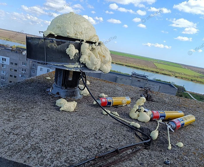 Жителі Теплодара вирішили, що сирена повітряної тривоги, завдання якої попереджати про загрозу та ворожі повітряні цілі, заважає спати вночі. Тож вони "задули" пристрій монтажною піною.
