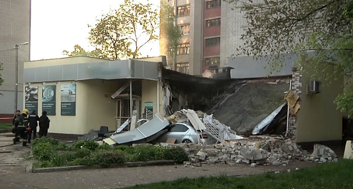 6 травня близько четвертої ранку до поліції надійшло повідомлення про вибух та подальше займання приміщення банку в центрі Чернігова. Вибухом було пошкоджено будівлю та припарковані поруч авто. Люди не постраждали.