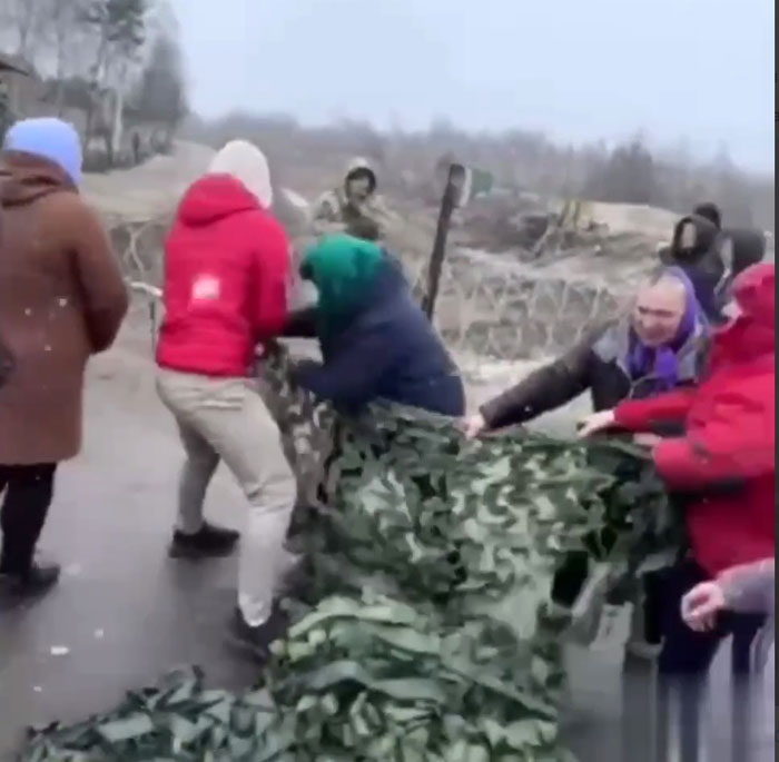 У місцевих Telegram-каналах 4 лютого поширили відео, на якому видно, як натовп жителів галасує навпроти військових, вочевидь, висловлюючи своє обурення. На одному з відео можна побачити, як люди штовхають військових, а один чоловік завдає ударів кулаками.