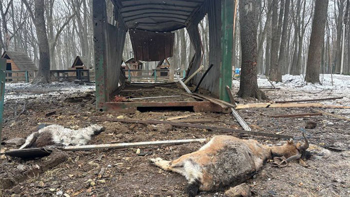 У "Фельдман Екопарку" на Харківщині внаслідок російського обстрілу загинули тварини. "Шахед" влучив біля контактного двору, де жили свійські тварини, у ніч на 3 березня.